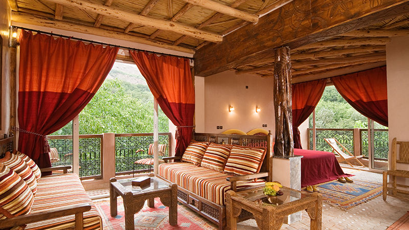 The Riad offers 6 rooms of which, 5 standard rooms and 8 suites. All rooms are exceptionally wide and have extensive windows and galleries with amazing all-encompassing views over the valley of Imlil.