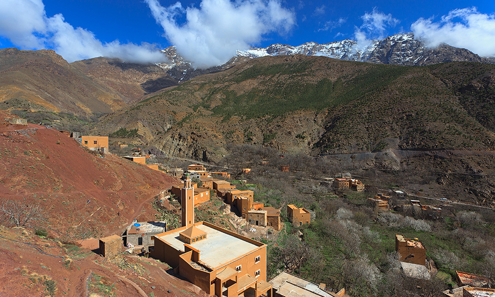There will be a stop at Aroumd to visit this rather singular village in the Assif Aït Mizane Valley, built seemingly house upon house on a large moraine spur, overlooking ancient irrigated terraced fields of barley, corn and vegetables and always surrounded by almond and walnut trees. The trek then continues for another half an hour until the stop for lunch at Dar Imlil. After lunch you set off back down the other side of the valley back to Imlil and the return trip to Marrakech.