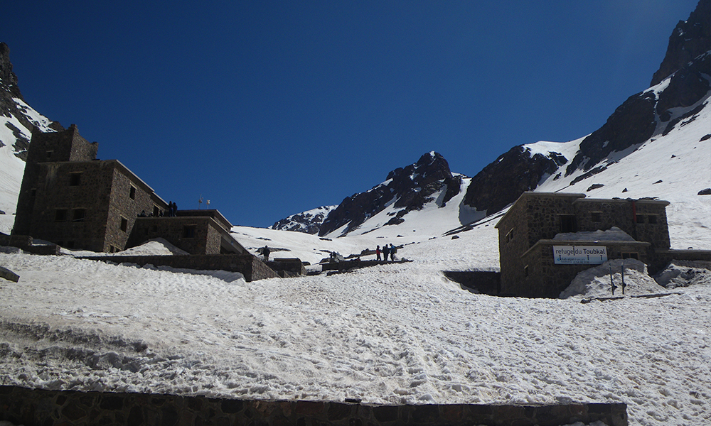 Departs by car from Marrakech around 9am. The drive takes about 1h30 and goes south up the Moulay Brahim Gorges, past the Asni weekly market every Saturday then to Imlil. Imlil is (1740m) set in the upper level foothills of the Western High Atlas mountains, a main trail-head with streams and paths branching out in all directions. Here we shall leave our vehicle to take a welcome glass of mint tea in the village and meet your local guide prior to setting out for some 4km excursion. We will go travel south to the Berber village of Aroumd (Aremd) (1843m), passing the hamlets of ait souka, Targa, and Imoula, up and down the stark slopes, the jagged Western High Atlas peaks of the Toubkal Massif before us – Jbels Aguelzim (3547m), Aksouâl (3847m) and the Adrar Adj (3122m) watching us all the way. We shall stop at Aroumd to visit this rather singular village in the Assif Aït Mizane Valley, built seemingly house upon house on a large moraine spur, overlooking ancient irrigated terraced fields of barley, corn and vegetables and always surrounded by almond and walnut trees. We thence carry on for another Half an Hour to get to our lunch.